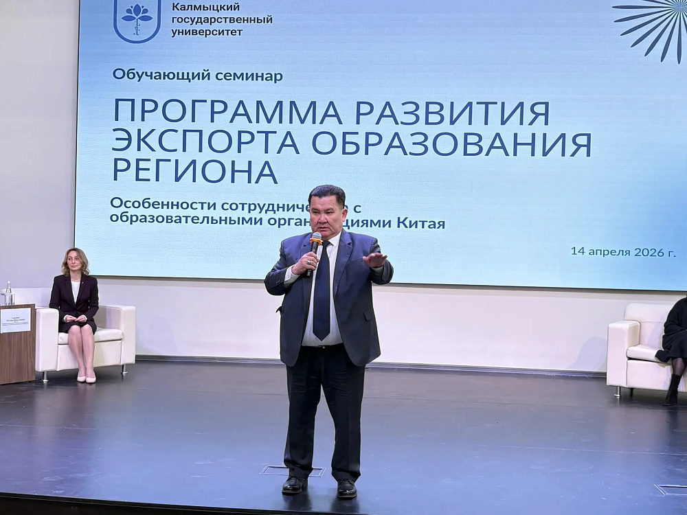 14 апреля 2026 года в стенах Калмыцкого государственного университета имени Б.Б. Городовикова состоялся обучающий семинар на тему «Программа развития экспорта образования региона. Особенности сотрудничества с образовательными организациями Китая». Организатором мероприятия выступил КалмГУ при поддержке приглашённых экспертов из Новосибирского государственного университета и Ижевского государственного технического университета им. М.Т. Калашникова. В семинаре приняли участие проректоры, деканы факультетов, заведующие кафедрами, представители органов исполнительной власти Республики Калмыкия.