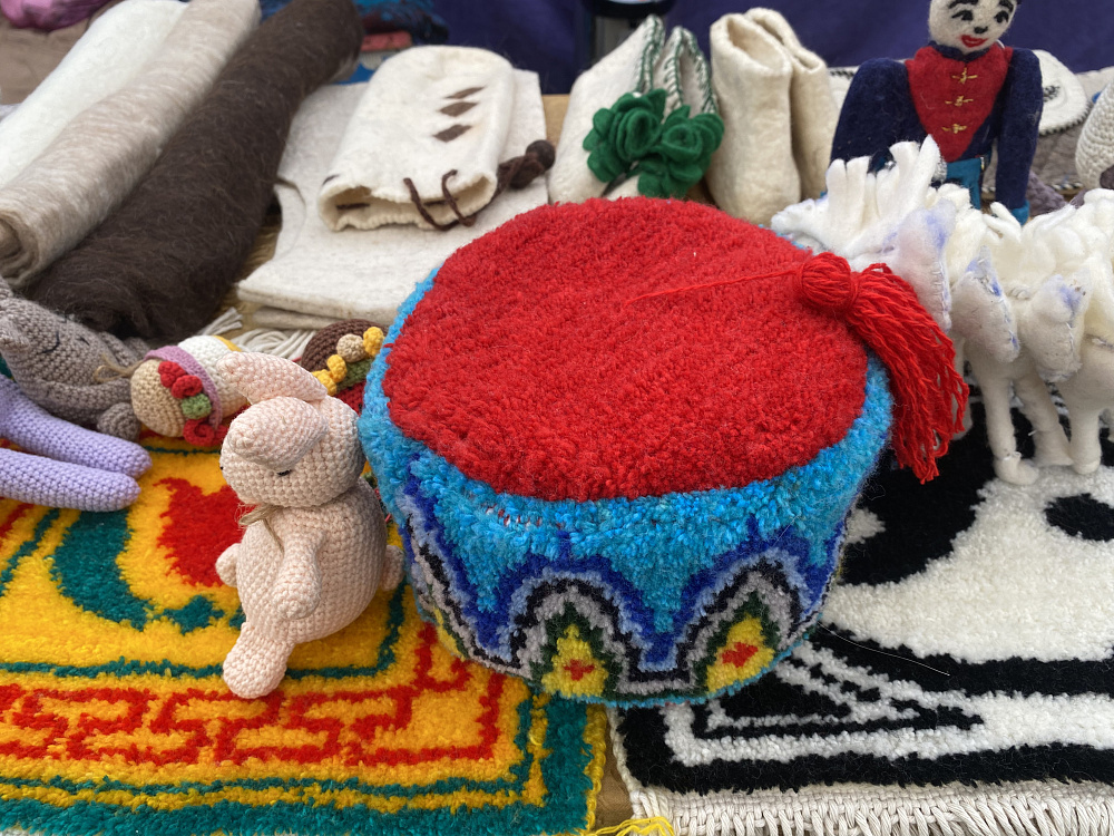 Основную часть экспозиции составляют войлочные и ковровые изделия, вышивка и бисероплетение, картины из войлока. Большой интерес вызывают макеты культовых сооружений, поделки из дерева, бумаги, пластилина, выполненные воспитанниками студии.