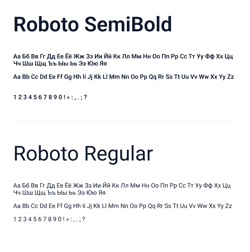 В качестве основного шрифта для набора текста на разных носителях используется шрифтовая гарнитура Roboto.